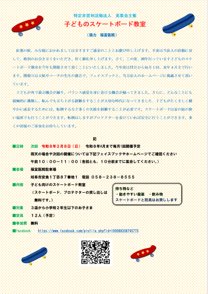 2026年2月8日スケートボード教室開催予定のお知らせ